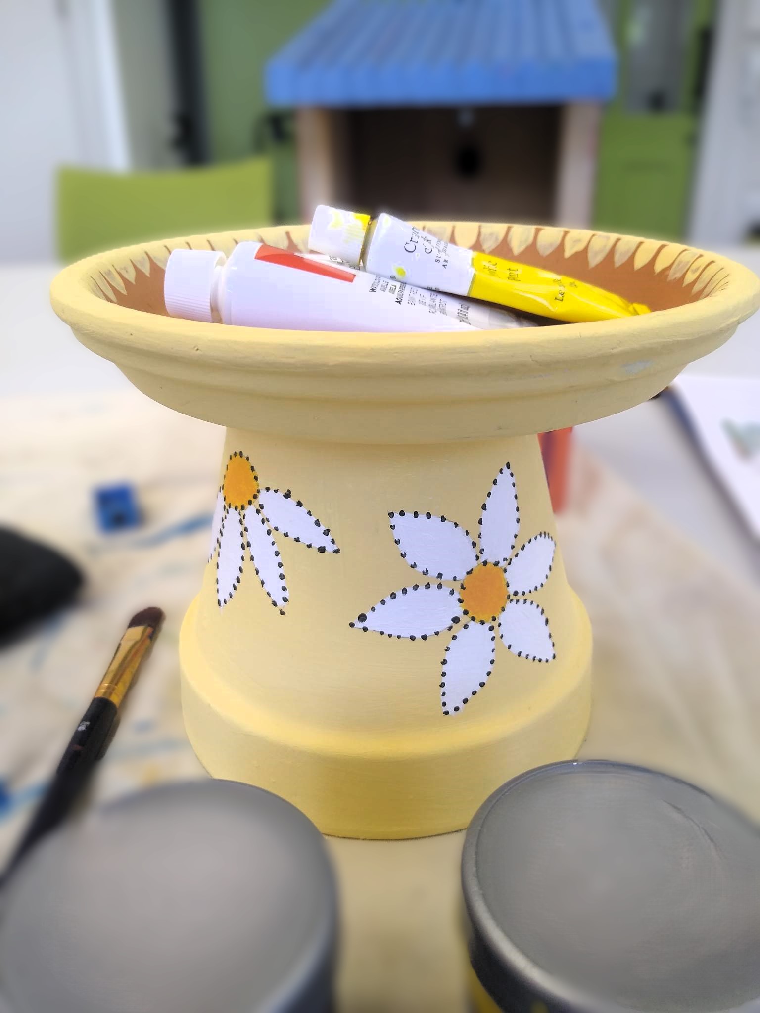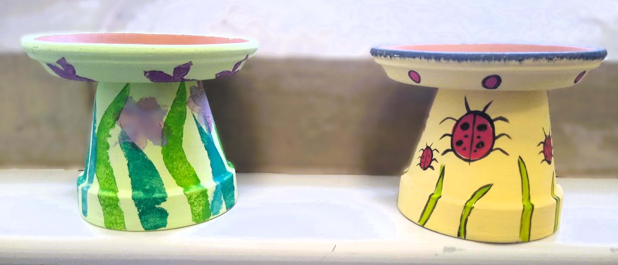 Our garden and growing themes continue with some bee drinking stations and birdhouses in full flight; we have a beautiful bee in progress (by Nico);  a flourish of flowers and trees (by Jane) adorn the centre; a seagull stands dutifully surveilling the scene (Nico); and all comes together in the Yin and Yang of two glorious tigers (by Amanda).  Winnie the Pooh and Friends is keeping a watchful eye on us as well just to make sure we know the Way and have a little fun as we go.
