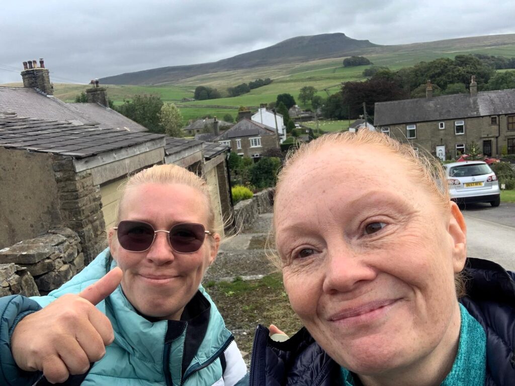 Deborah and Becky in true Howlands-style took on this monumental hill the wrong way round, according to most of the people they passed on the way! This was intentional, though, to increase the difficulty of the challenge. For those who know Pen-y-Ghent, it has a pretty difficult and almost vertical part to the climb where it takes some fleet of foot to work your way up, or down as our ladies decided to do it.